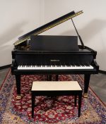 This 5’8″ Baby Grand Baldwin Model R is the pillar of the professional level pianos made by Baldwin. Made in America in 1996, this elegant piano features a lovely ebony finish. It is considered to be an absolute delight to play with a marvelous touch and tone, sensible exertion. This classic Model R is a prime example of the quality and style Baldwin was capable of constructing.