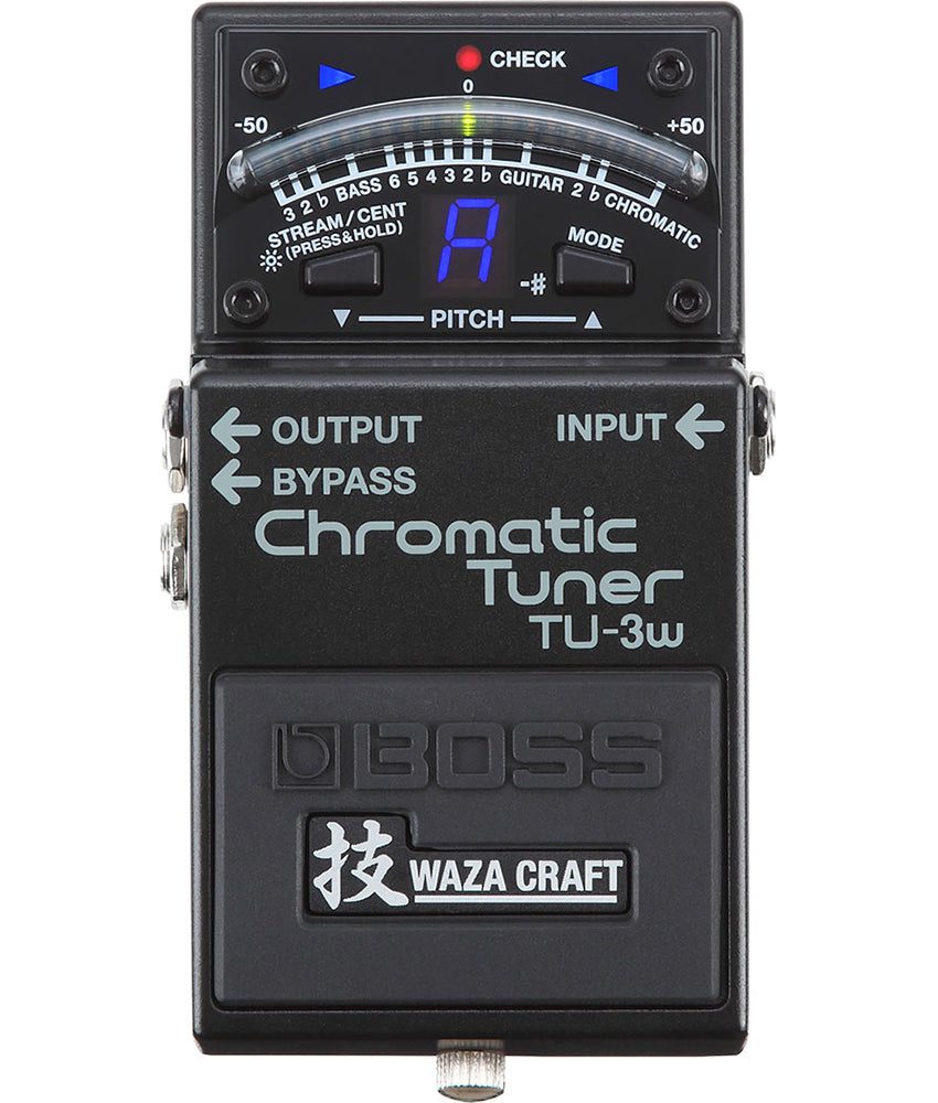 With the TU-3W, BOSS brings Waza Craft mojo to the world’s leading stompbox tuner. At its core, the TU-3W provides rock-solid tuning equivalent to the industry-standard TU-3. In true Waza tradition, the pedal’s benchmark functionality is further enhanced with BOSS skill and craftsmanship. Pure, uncolored signal transfer is essential for a tuner, and the TU-3W features redesigned circuitry with selectable buffered or true-bypass operation and the most transparent audio pass-through possible. Packing high-end performance for discriminating players, the TU-3W delivers a premium pedal experience only available from BOSS.