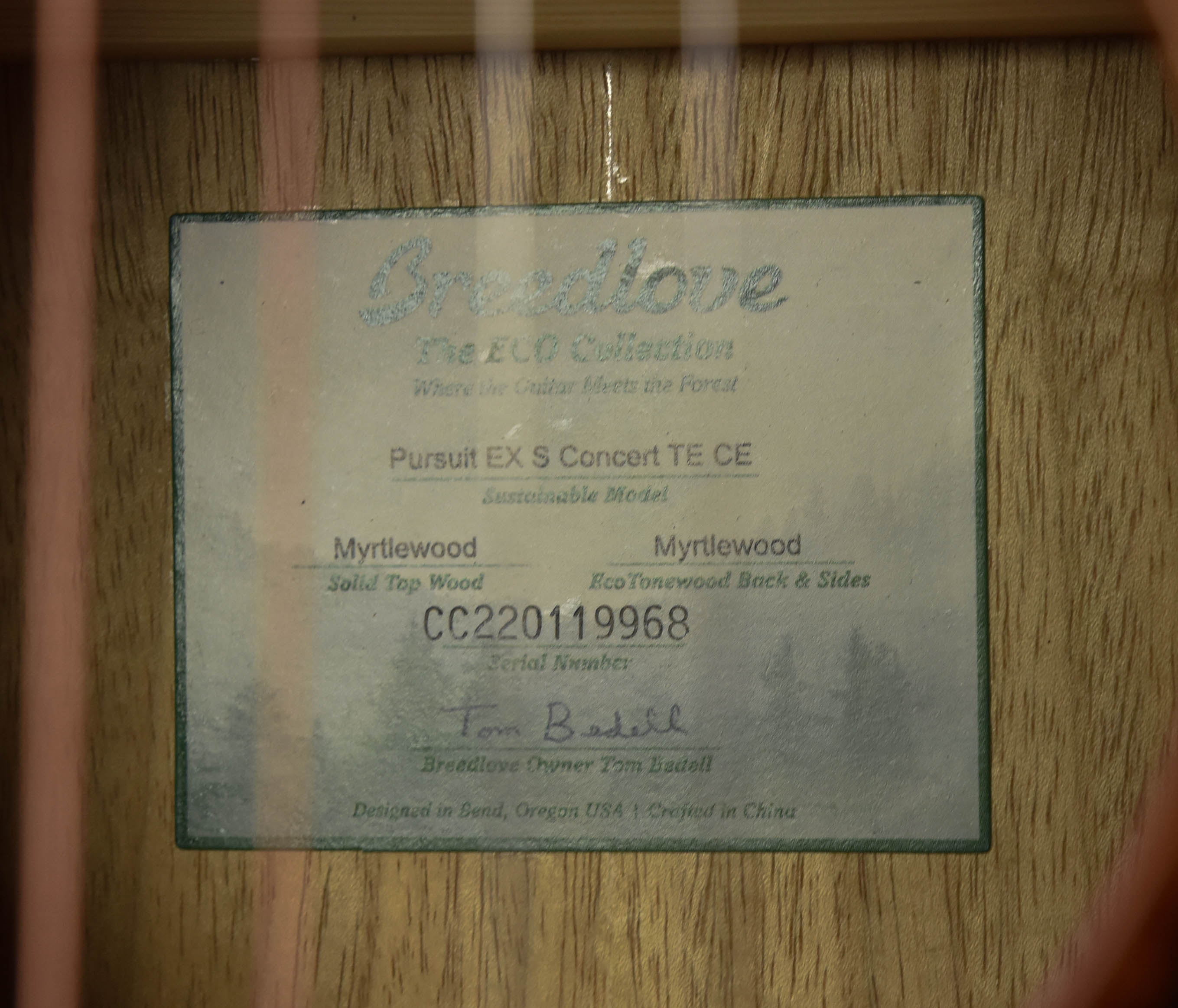 Myrtlewood, while native to Oregon’s Pacific coast, might just be the most ‘exotic’ of all tonewoods, capturing the deep bass of rosewood, the pure warmth of mahogany and the sweet, glassy treble of maple in one exquisite, visually enchanting package—here under an equally captivating tortoise-bound Tiger’s Eye gloss finish. This sustainable acoustic electric Pursuit Exotic S Concert is all about trademark musical versatility and personal playing comfort. Pick for hours, strum forever, let your dreams roam. A fast, slim neck and soft cutaway access to every fret let your fingers, and your heart, have their say. Sound better than ever with Breedlove’s earth-conscious, sonically superior EcoTonewood technology. Get fierce with a Tiger’s