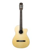 Added side dot markers also depart from traditional nylon string guitar construction, providing players reference points for hand position on the fretboard. Available with a solid spruce top, fusion neck with a 16″ radius fretboard and 48mm nut. Equipped with the Fishman Sonitone Pickup System, the Fusion 5 Limited is ready to plug in and play.