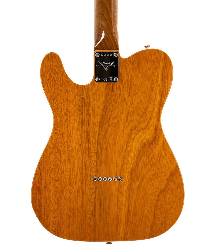 Custom Shop P90 pickups are combined with a three-way switch and a Fat ’50s Dual P90 wiring for strong, balanced tone and perfect resonance in any position. Other features include a brown shell pickguard, “sawed-off” Tele bridge with RSD compensated brass saddles, vintage-style tuning machines with brown shell buttons, bone nut and a wing string tree.