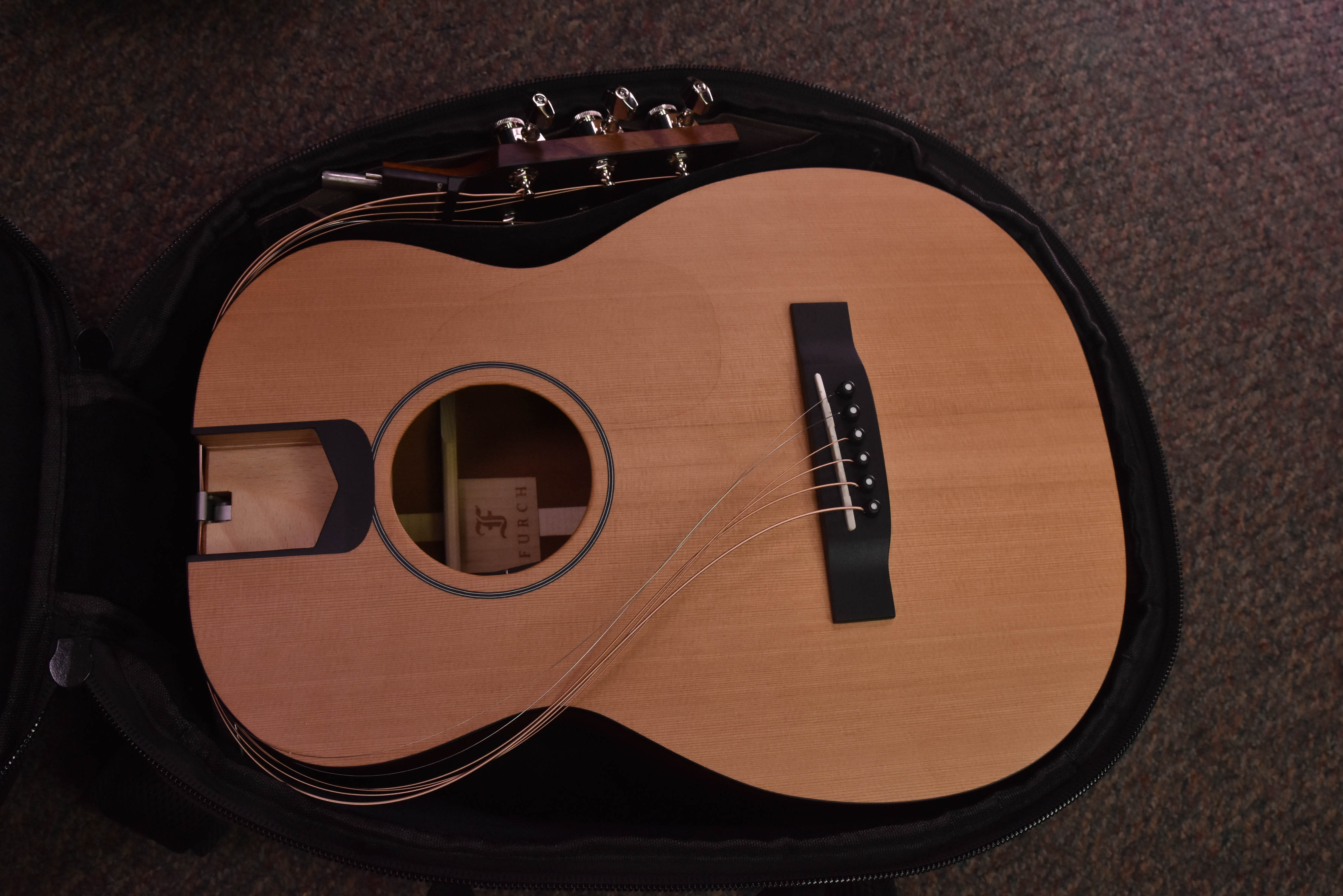 Furch Little Jane is a unique travel guitar designed to give you the freedom to take your instrument with you wherever you go. Our proprietary assembly system allows the guitar to be easily and quickly assembled into a full-fledged instrument. Likewise, the instrument can be simply disassembled into a compact form and stored in a travel bag with the size of a regular backpack.