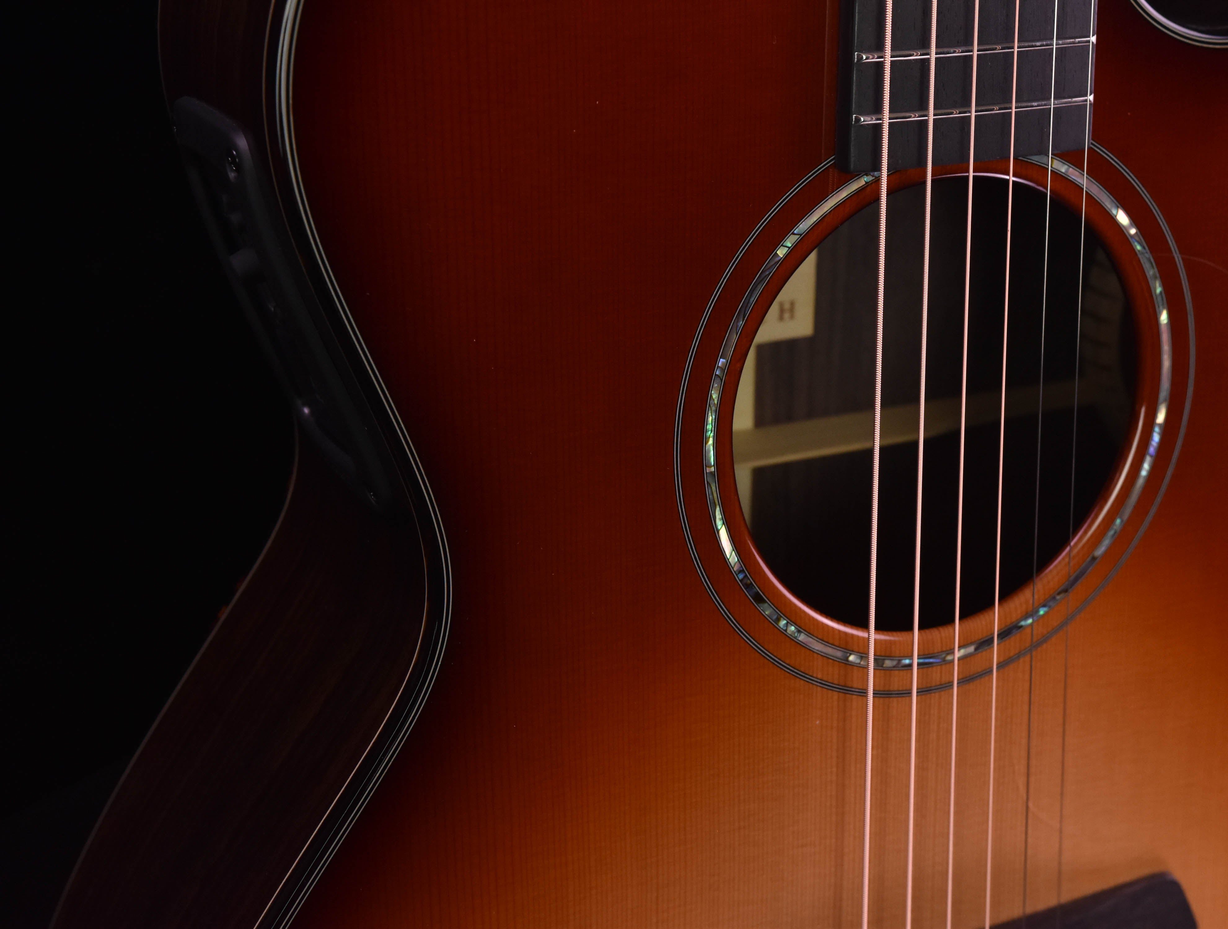 - Beautiful amber appearance featuring a cedar top and a host of appointments made from artificial tortoise and abalone.