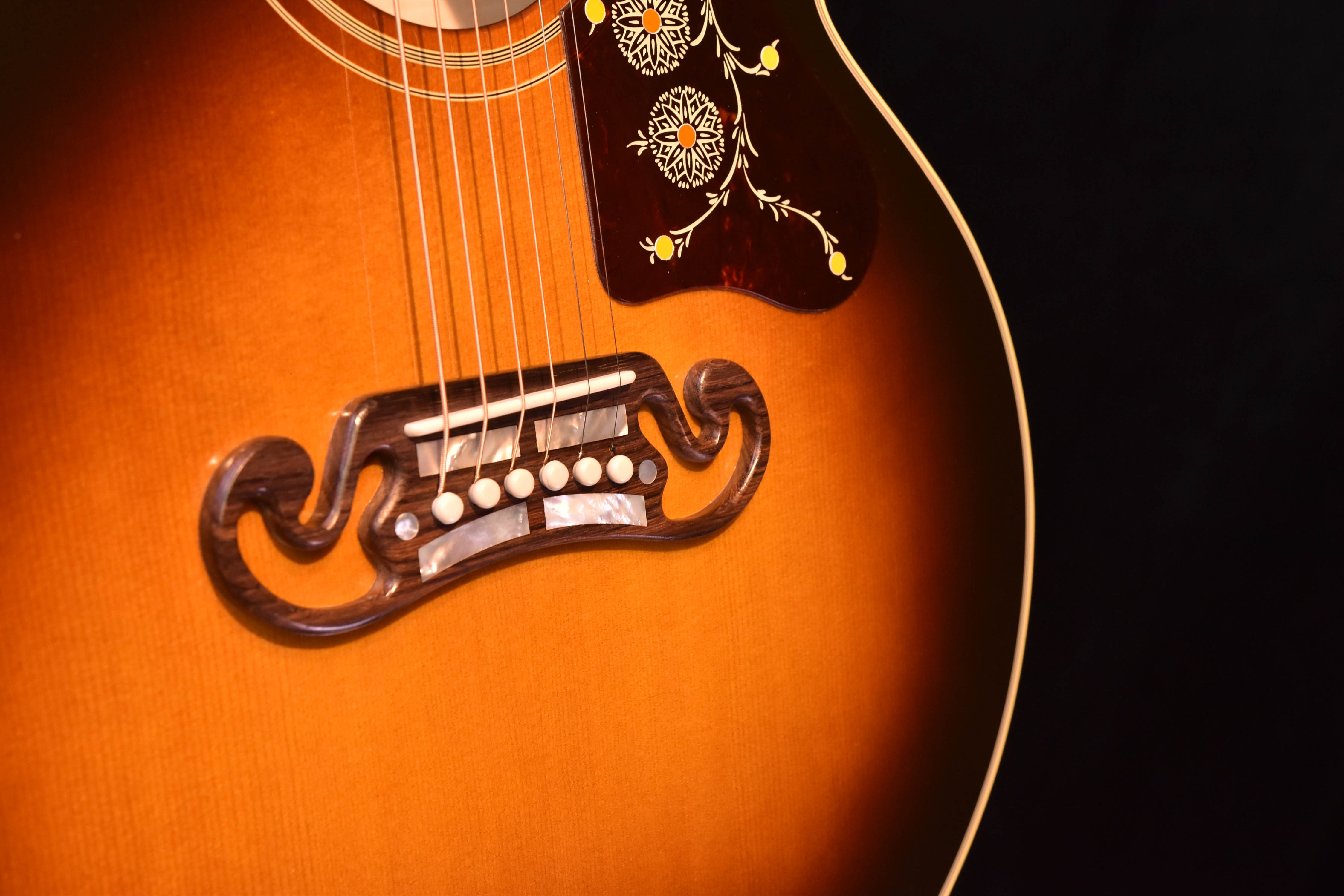 • Bridge: Four bar SJ-200 Moustache; Ebony