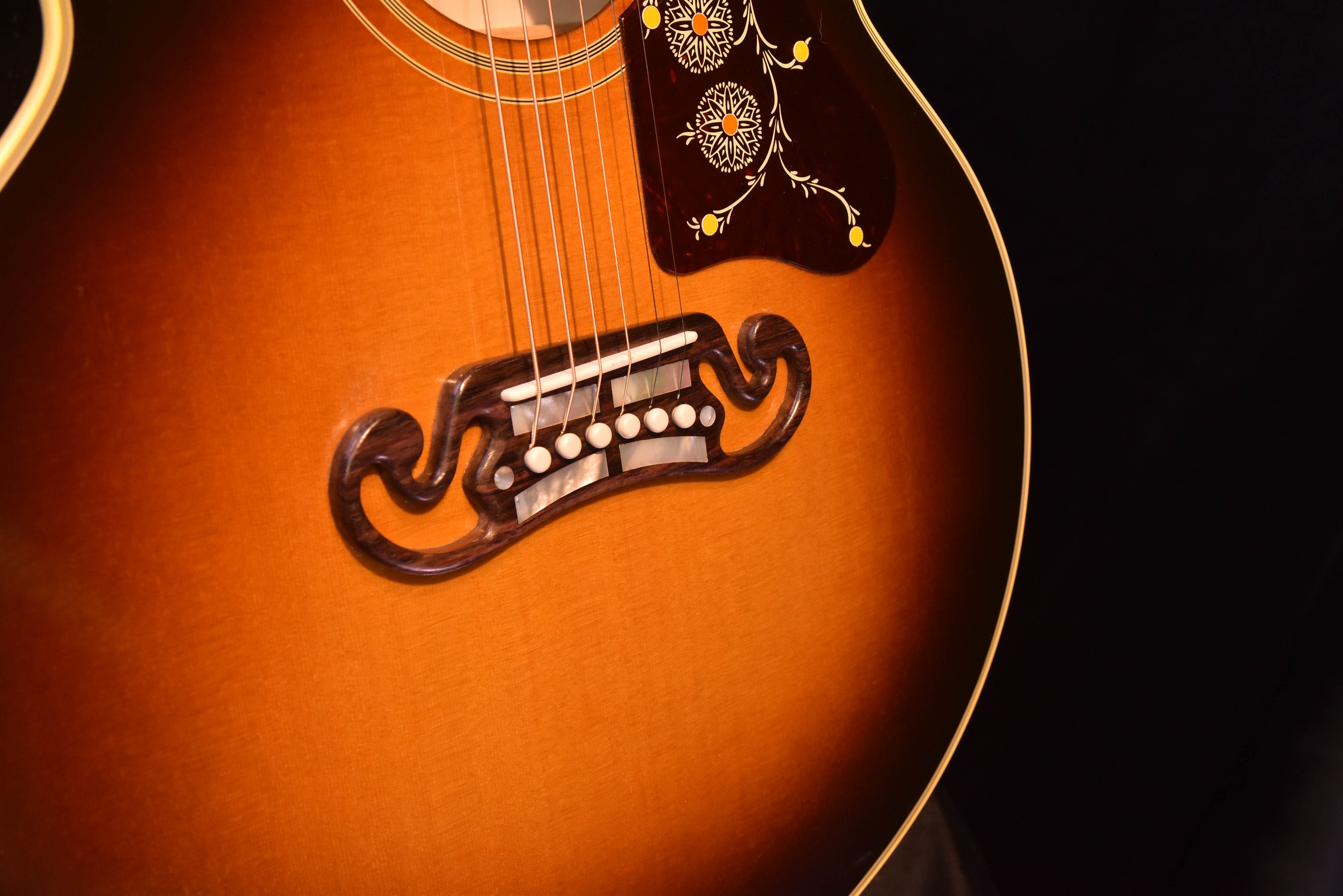• Bridge: Four bar SJ-200 Moustache; Ebony