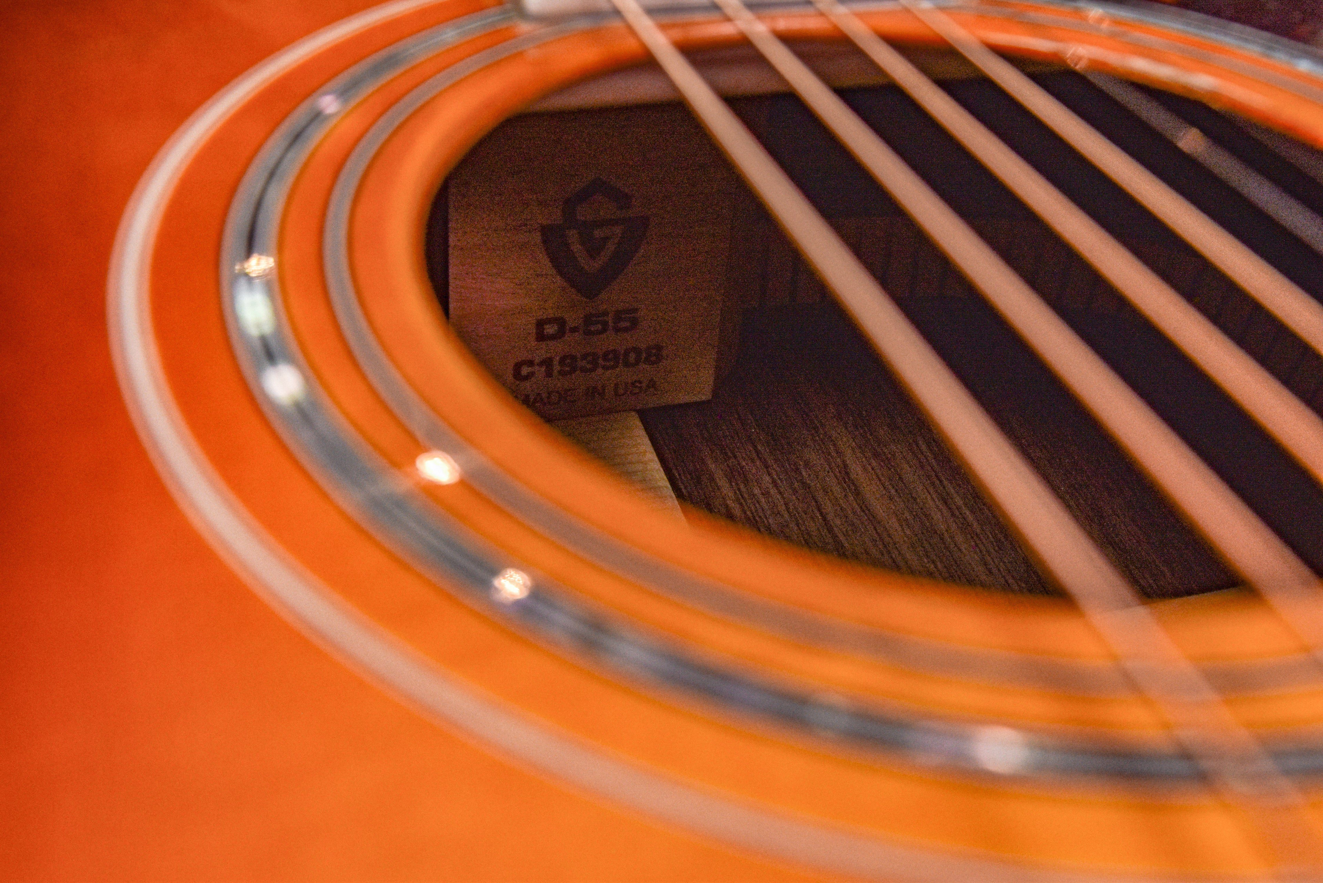 First introduced in 1968 as a special-order top-of-the-line model, the D-55 was so well-received that Guild added it into the regular production line by 1974. Famously played by Tommy Smothers on the Smothers Brothers Show in the 1960s, the D-55 grew in both popularity and longevity over the decades, finding homes in the hands of more contemporary artists like Waylon Jennings, Billie Joe Armstrong, and David Nail. The most anticipated return of a Guild acoustic to date, the 2017 Guild D-55 is back and better than ever. The D-55 remains true to all the premium appointments of its 1968 predecessor, including a AAA Sitka spruce top, solid Indian Rosewood back and sides, ebony fingerboard and bridge, and nitrocellulose finish. Internal refinements include scalloped Adirondack bracing as well as an improved dovetail neck-joint, hand fit to make this generation of D-55 the lightest, loudest, and best-sounding yet. The D-55 showcases Guild’s most recognizable headstock which is fully bound and features the Guild “Peak and Shield” inlay combination over a figured ebony overlay. The matching ebony fingerboard is also fully bound and inlayed with Guild’s iconic abalone/pearl “V-Blocks” and multi-line “railroad track” purfling on the bass and treble sides. The D-55’s fingerboard is set on an all-mahogany neck with beautiful walnut center seam running the length of the heel to headstock. The D-55’s nitro finish is available in natural or Antique Burst and is hand sprayed for minimum thickness and maximum resonance that will only get better with age. An LR Baggs pickup system is available as an option, and each guitar includes a hand-signed certificate of authenticity and ships with Guild’s Premium humidified hardshell case.
