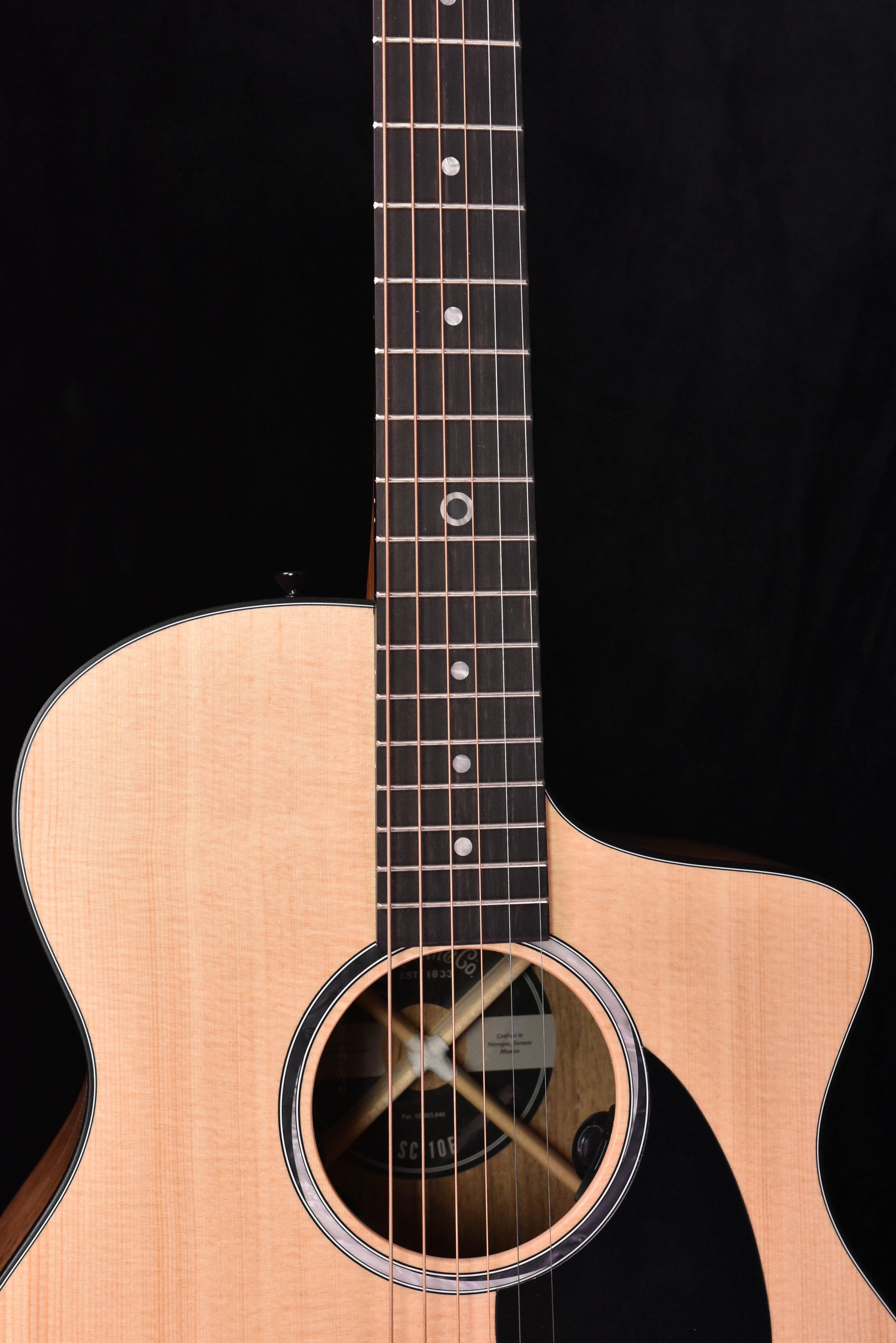 It’s time to rethink what an acoustic-electric guitar can do. Do you want to play leads all the way up the neck? Play longer? Play louder? Now you can with this super-comfortable, easy-to-play acoustic-electric from Martin. The SC-10E, with its patented Sure Align® neck system, gives you full access to all frets so you can comfortably reach those high notes. It’s also equipped with a low-profile velocity neck barrel that ergonomically accommodates your hand as you move up the neck, giving you the comfort and playability of an electric. The affordably priced SC-10E includes a satin finished sitka spruce top and stunning koa fine veneer back and sides. The design motif features a black and white aperture rosette inlay that is complimented by an ebony headplate, fingerboard, and bridge and black tuners and knobs.