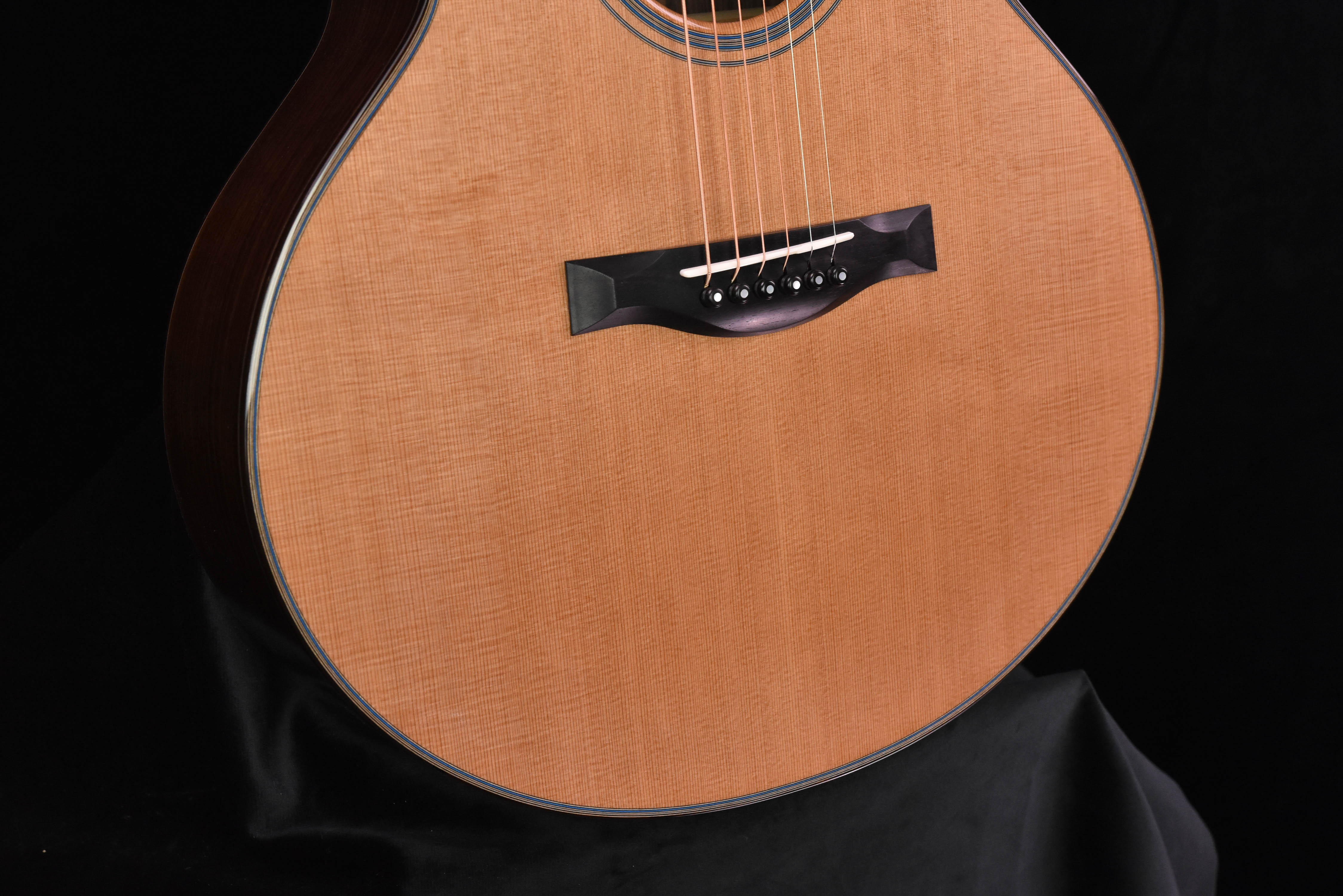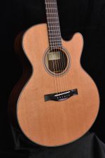 The FS Model was designed in response to the renaissance of alternate tunings for complex fingerstyle arrangements. Tacoma and Windham Hill labels provided the showcase for these new and sophisticated steel string explorers who were attempting to express themselves on booming dreadnoughts. Will Ackerman, Robbie Basho, Daniel Hecht, Duck Baker and Michael Hedges all looked to SCGC for the teams’ expertise in achieving custom tone to make an instrument with the perfect voice for this new style. With input from the pros, the tiny SCGC team at the time, which included Jeff Traugott, Michael Hornick and Steve Palazzo, stepped up to the challenge with this concept: design and build a specialty fingerstyle instrument that responds with immediacy and volume to the minimized energy imparted from fingertips and the reduced tension of many open tunings. Give it a contemporary aesthetic of simple elegance and complexity of tone that the player can not outgrow. Twenty-five years and numerous awards and accolades later, The Fretboard Journal credits the Santa Cruz FS as the inspiration for the guitar designs of some of the brightest lights in contemporary lutherie and a strong influence on major manufacturers. The FS is a truly sophisticated instrument that will allow the best possible presentation of your fingerstyle technique.