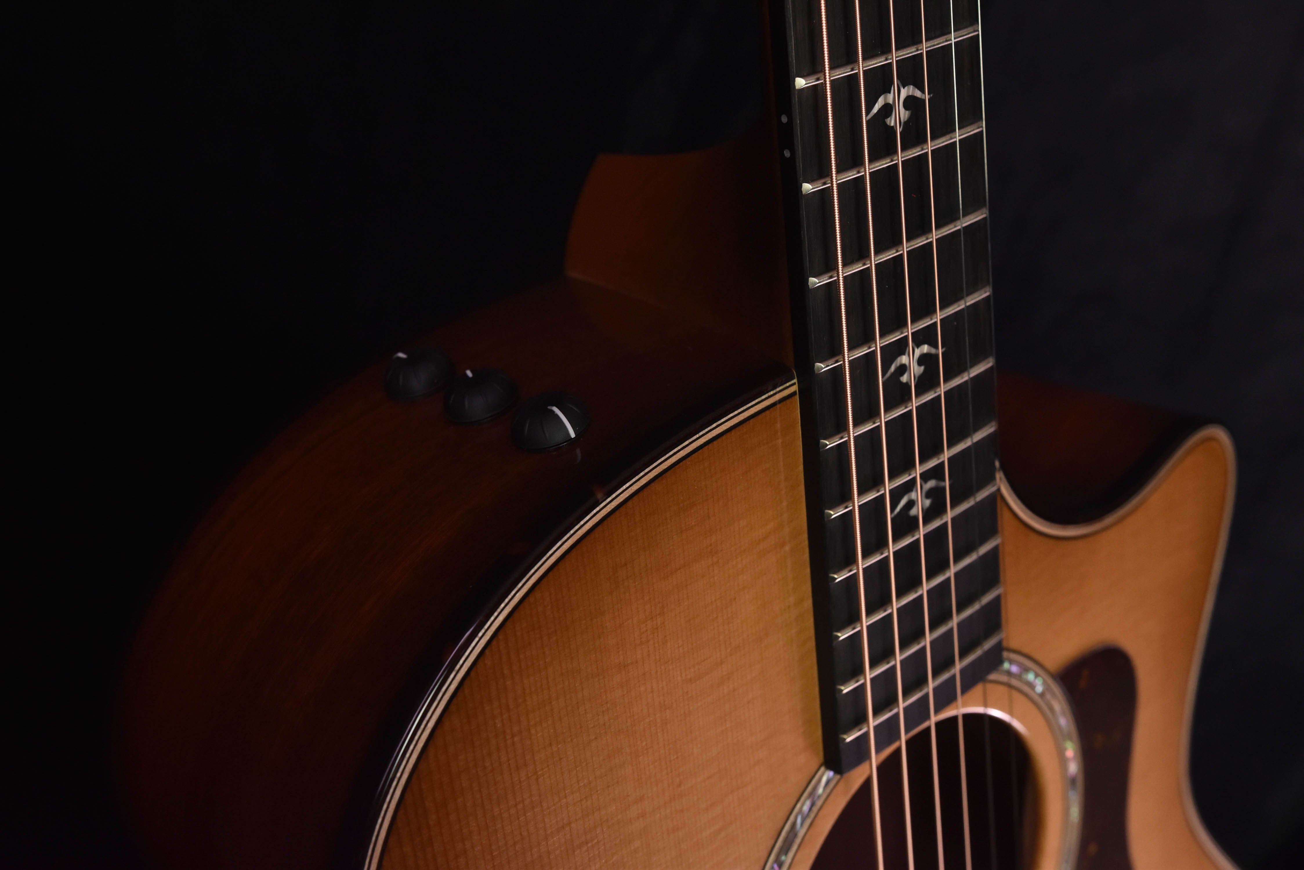 The Tone: Imagine the sonic depth and richness of Indian rosewood pushed to another level. Red Ironbark’s hardness and density are comparable to ebony, and together with a roasted spruce top, produce a sound that’s loud, muscular and sweet, with piano-like fidelity, complexity and depth across the entire frequency spectrum. Notes jump out of the guitar, producing a natural amplifying effect that will fill a room with sound. Any player who appreciates the sonic virtues and versatility of our flagship rosewood/spruce 814ce will love the Grand Auditorium 514ce, while the other new 500 Series entry, the Grand Concert 512ce, also produces remarkable volume and dynamic range, blending the responsiveness of a smaller body with bold projection that also makes it an inspiring strummer.