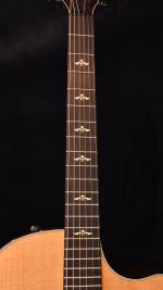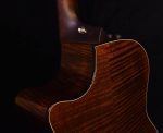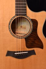 Taylor’s V-Class bracing is a fundamental innovation in acoustic guitar design. It marks an important evolution beyond traditional X-bracing, introducing an entirely new platform for acoustic performance. It is essentially a “sonic engine” that optimizes the response of an acoustic guitar in three key ways: by boosting volume, sustain, and by largely resolving the intonation (in-tune-ness) issues that have long plagued acoustic guitars. V-Class bracing creates purer, more orderly notes that don’t cancel each other out or sound “off”. They have clearer, more consistent response, and the whole fretboard is brought into greater sonic alignment for a more musical playing/listening experience. Guitars with V-Class bracing are easier to tune; the pitch sounds purer and more solid, and electronic tuners can more easily locate notes for quick, precise tuning. Other benefits: harmonics ring more uniformly down the neck, notes are louder with more projection and sustain, and notes are more consistent, i.e., upper register notes don’t get choked out or swallowed. Fewer “sour” sonic qualities exist with chords; a more agreeable relationship is created between notes as they ripen, bloom and decay.