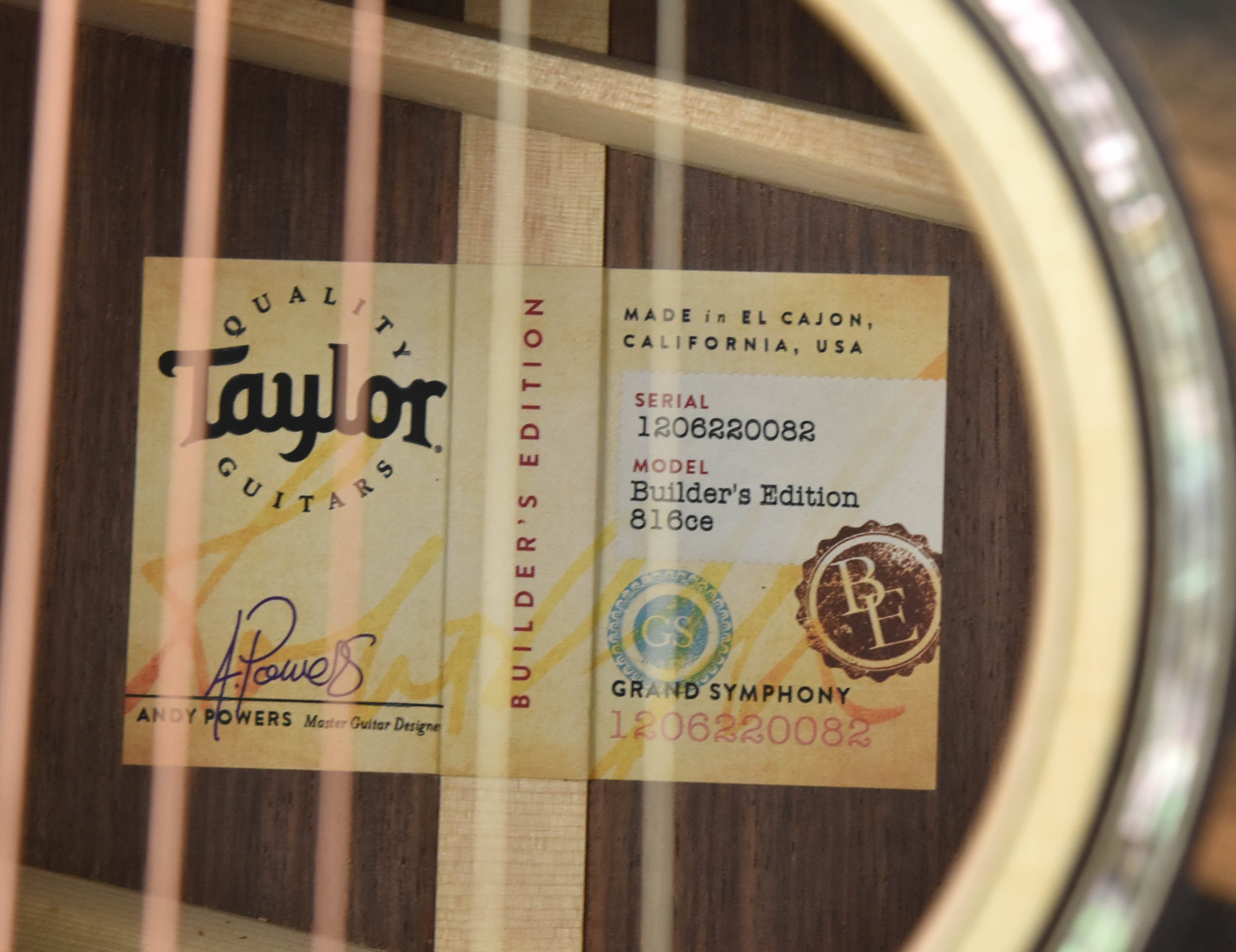 Leading the way for our newly redesigned Grand Symphony body shape, the Builder’s Edition 816ce highlights the transformative Taylor design philosophy with lovingly crafted contours, an expansive acoustic tone, and player-focused enhancements. The ultimate playing experience begins with Indian rosewood back and sides paired with a Lutz spruce top, offering all the low-end warmth and sparkle you’d expect from the classic rosewood/spruce combination with additional bloom and resonance added by V-Class bracing. But this Builder’s Edition model truly shines in the details, starting with its most significant innovation: the soundport cutaway. Crafted to resemble a partial Florentine cutaway, the design keeps the guitar’s full back intact while still allowing easy access to the high-register frets. The additional soundhole adds a truly new dimension of acoustic sound, creating a wide-angle sound that would fit as well in a classical orchestra as it would a rock band or a fingerstyle solo act. For aesthetics, we’ve appointed this model with a host of our most player-centric features, including figured maple binding with chamfered edges and rosewood edge trim, a single-ring rosette in green abalone, Windansea inlays in shell and mother-of-pearl, and ultra-precise Gotoh 510 tuners in antique gold. The guitar ships with ES2 electronics in a deluxe Taylor hardshell case.