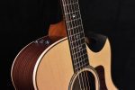 Leading the way for our newly redesigned Grand Symphony body shape, the Builder’s Edition 816ce highlights the transformative Taylor design philosophy with lovingly crafted contours, an expansive acoustic tone, and player-focused enhancements. The ultimate playing experience begins with Indian rosewood back and sides paired with a Lutz spruce top, offering all the low-end warmth and sparkle you’d expect from the classic rosewood/spruce combination with additional bloom and resonance added by V-Class bracing. But this Builder’s Edition model truly shines in the details, starting with its most significant innovation: the soundport cutaway. Crafted to resemble a partial Florentine cutaway, the design keeps the guitar’s full back intact while still allowing easy access to the high-register frets. The additional soundhole adds a truly new dimension of acoustic sound, creating a wide-angle sound that would fit as well in a classical orchestra as it would a rock band or a fingerstyle solo act. For aesthetics, we’ve appointed this model with a host of our most player-centric features, including figured maple binding with chamfered edges and rosewood edge trim, a single-ring rosette in green abalone, Windansea inlays in shell and mother-of-pearl, and ultra-precise Gotoh 510 tuners in antique gold. The guitar ships with ES2 electronics in a deluxe Taylor hardshell case.