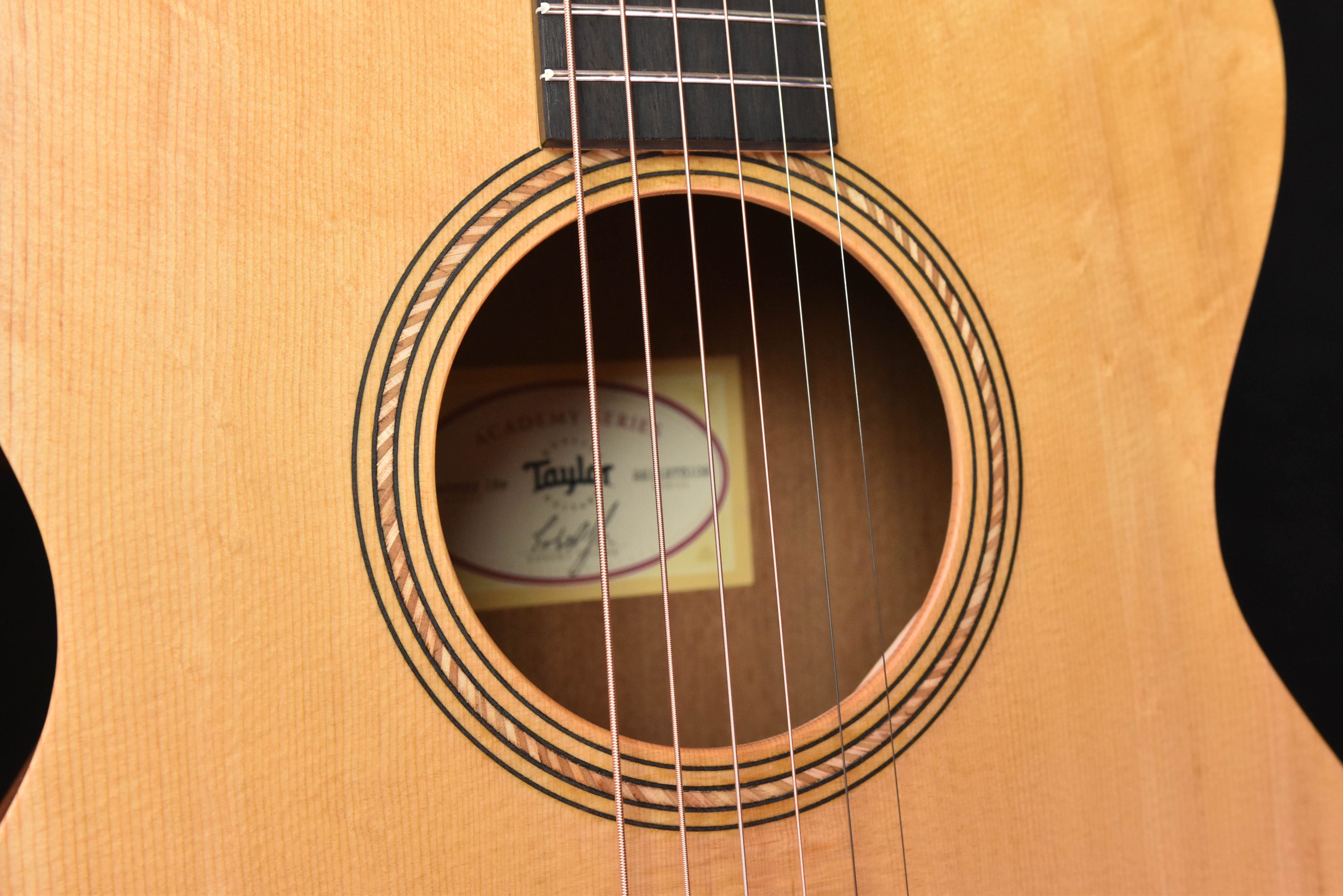 Taylor’s Academy Series makes the playing experience more accessible in every way, packing signature Taylor playing features into an affordable package. With the Academy 12e, our compact Grand Concert body makes the perfect companion for fingerpicking or anyone with a lighter touch who craves the physical comfort of a small-body guitar. The guitar’s design specs are optimized for playing ease. Taylor’s patented, slim-profile neck features an array of hand-friendly touches: a shorter 24-7/8-inch scale length, 1-11/16-inch nut width, low action, and light gauge strings, all of which contribute to a slinky handfeel. The lightweight guitar body, featuring layered sapele back and sides with a solid Sitka spruce top, boasts an ergonomic armrest that enhances the playing comfort for one’s picking arm. The guitar was also voiced to be extra responsive to make the playing experience as relaxed as possible. The guitar comes with an onboard ES-B pickup that includes a built-in digital chromatic tuner, and comes with a sturdy lightweight gig bag.