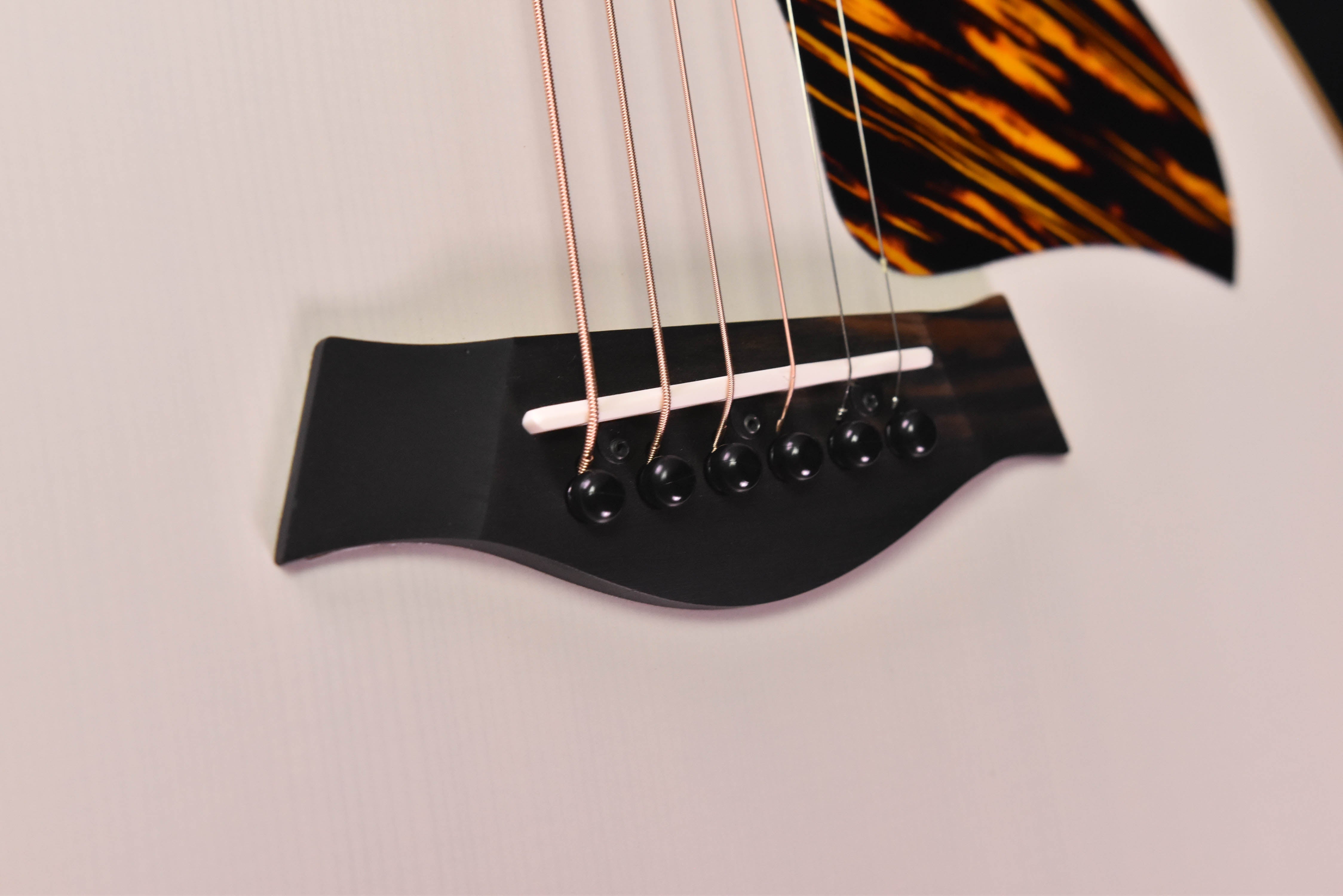 Boasting a transparent white top color treatment that reveals grain lines of its spruce soundboard beneath, the GS Mini-e Special Edition, Trans White presents an attention-grabbing, head-turning visual aesthetic. A vivid focal point for its eye-catching design, a vibrant firestripe pickguard creates a striking contrast against the white soundboard. Layered sapele back and sides are paired with a solid torrefied Sitka spruce top in our scaled-down, matte-finished Grand Symphony body. The result is a travel-friendly guitar that offers bold projection and a rich, balanced tone profile with a sweet, played-in sound. Thanks to its slender Taylor neck, low action and compact 23-½-inch scale length, it’s no wonder the award-winning GS Mini is so comfortable and fun to play. A built-in ES-B pickup, which includes a digital tuner, delivers clear, natural amplified tones for players who want to plug in. With the included gig bag, you and your GS Mini are set to hit the road for all your musical adventures.