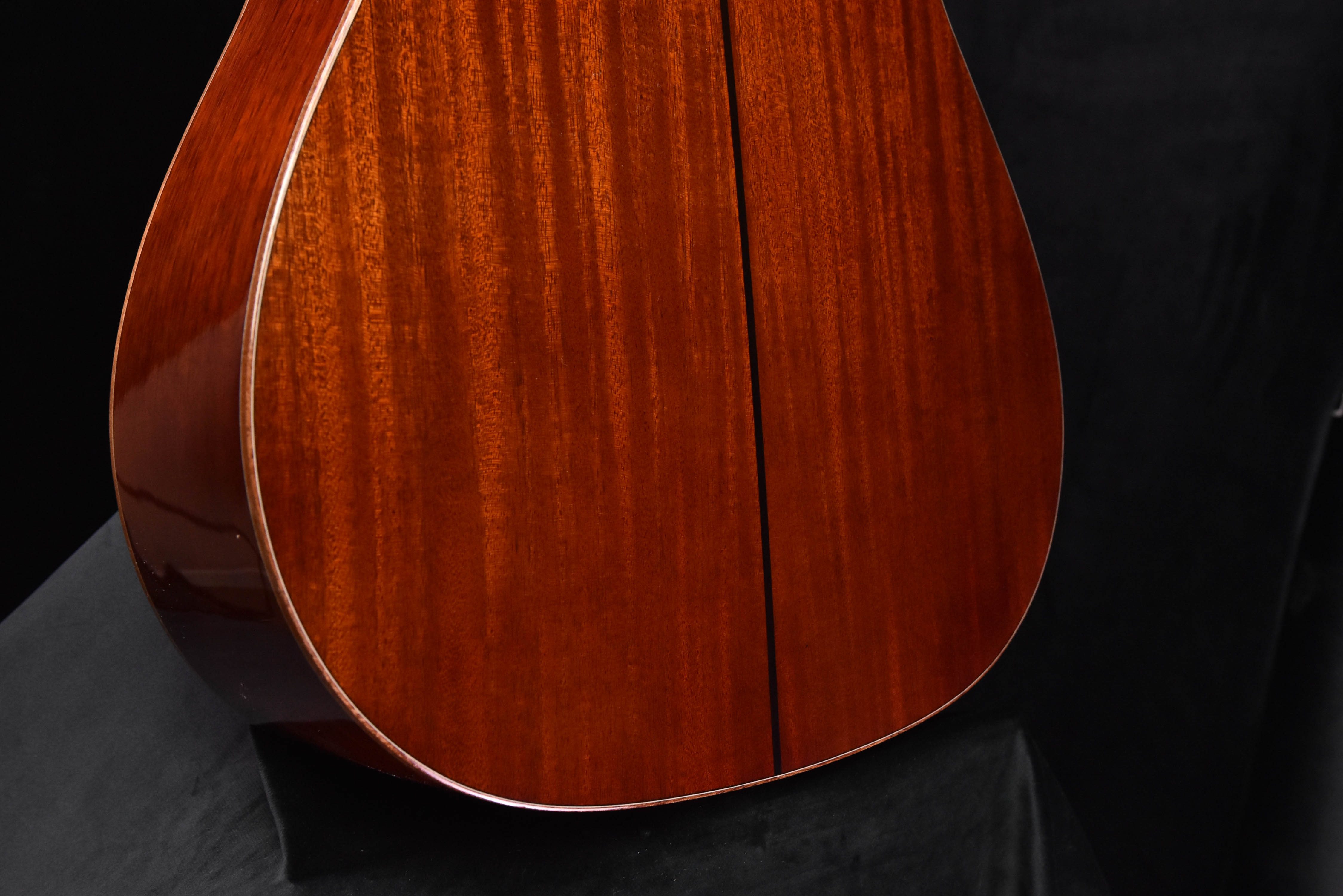 - Solid mahogany back and sides produces a warm and woody sound