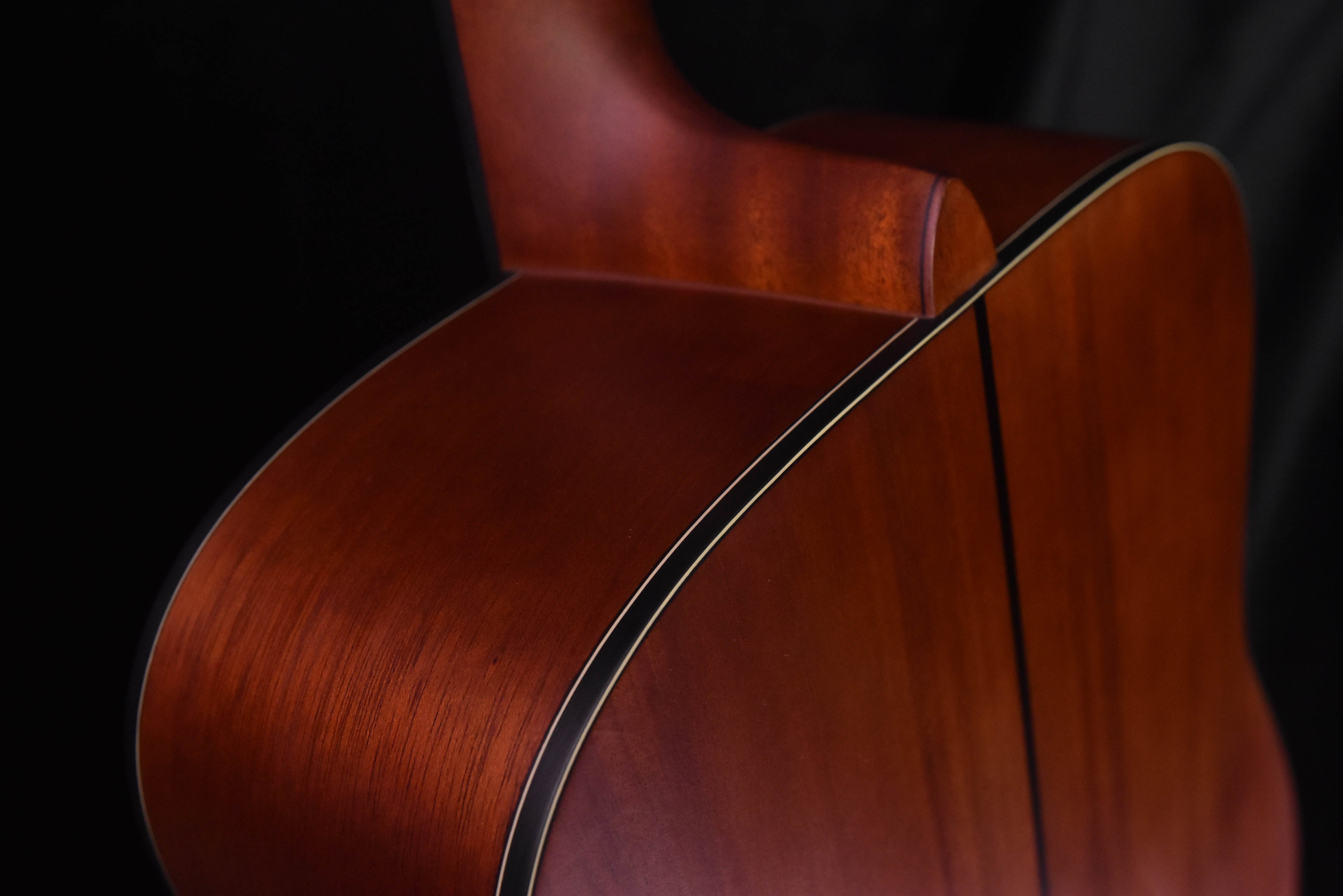 • Solid mahogany back and sides produces a warm and woody sound