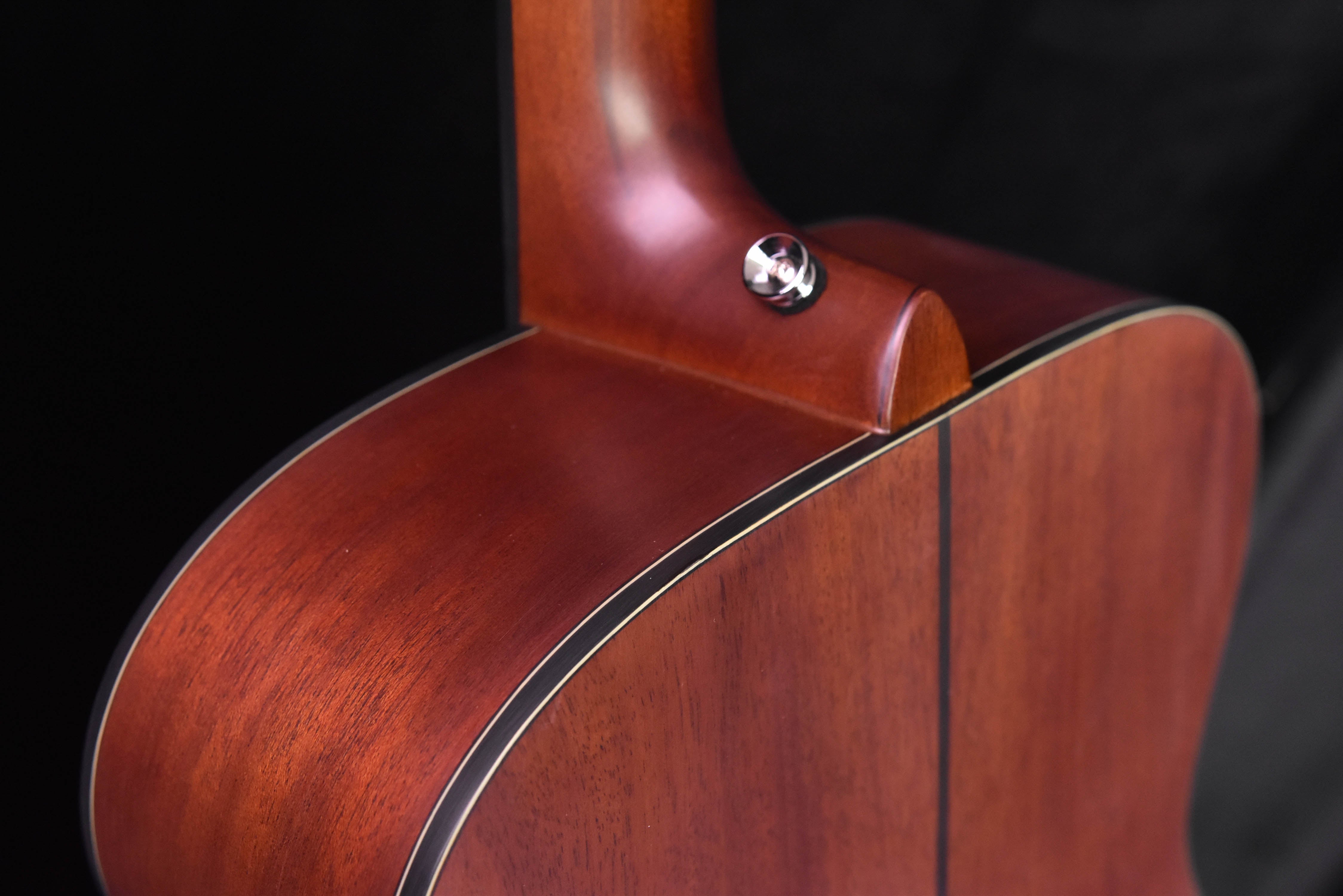 - Solid mahogany back and sides produces a warm and woody sound