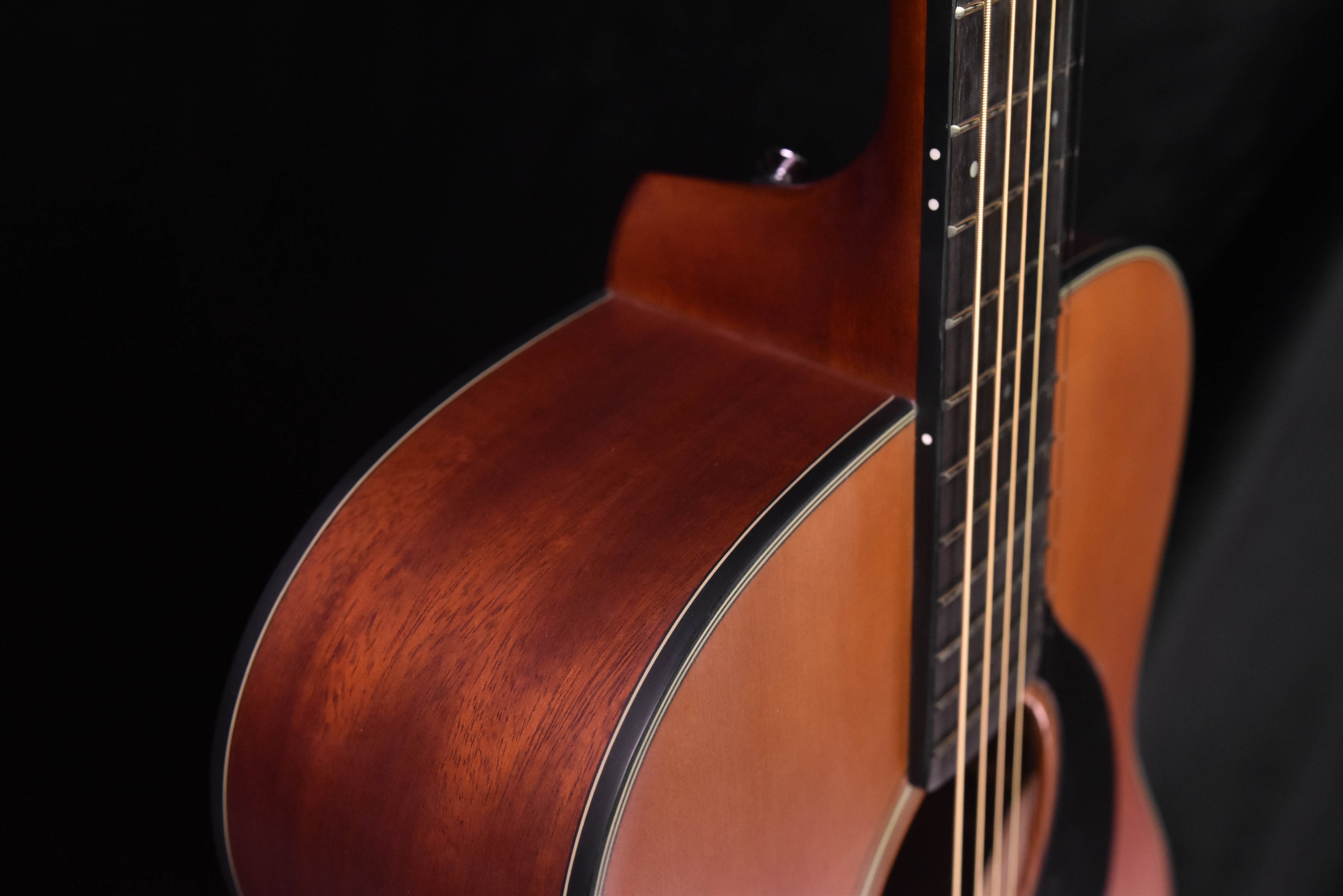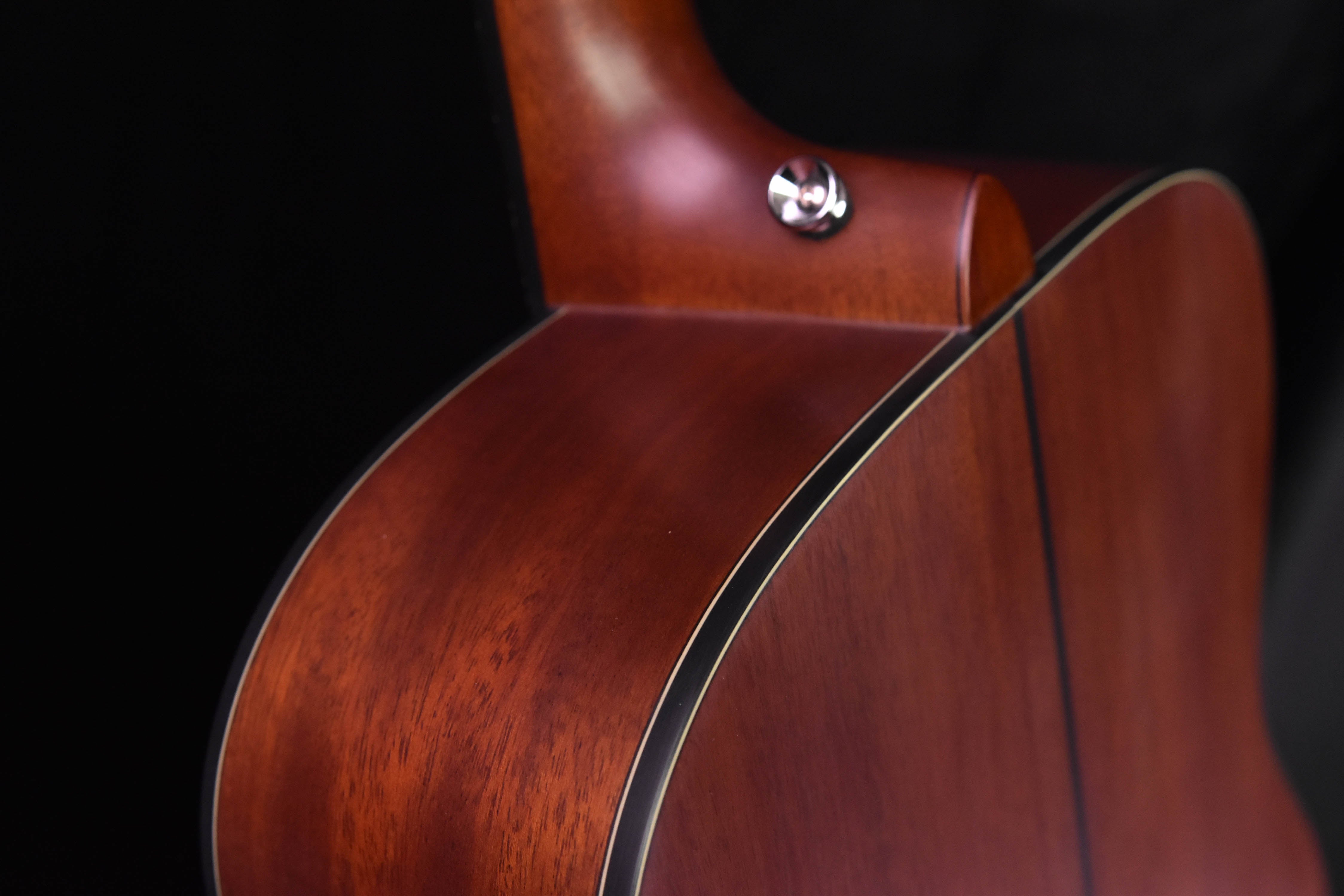 - Solid mahogany back and sides produces a warm and woody sound