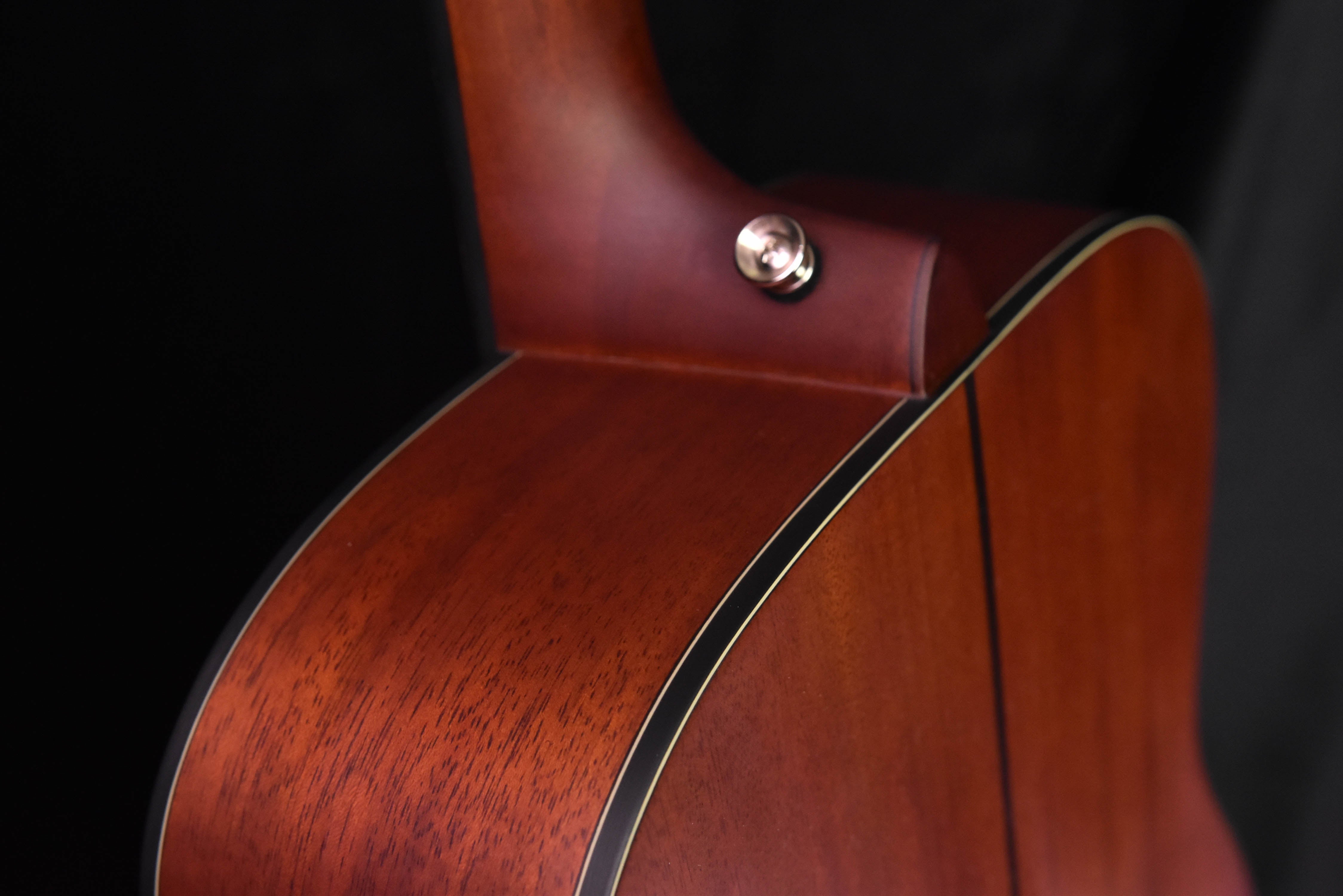 - Solid mahogany back and sides produces a warm and woody sound