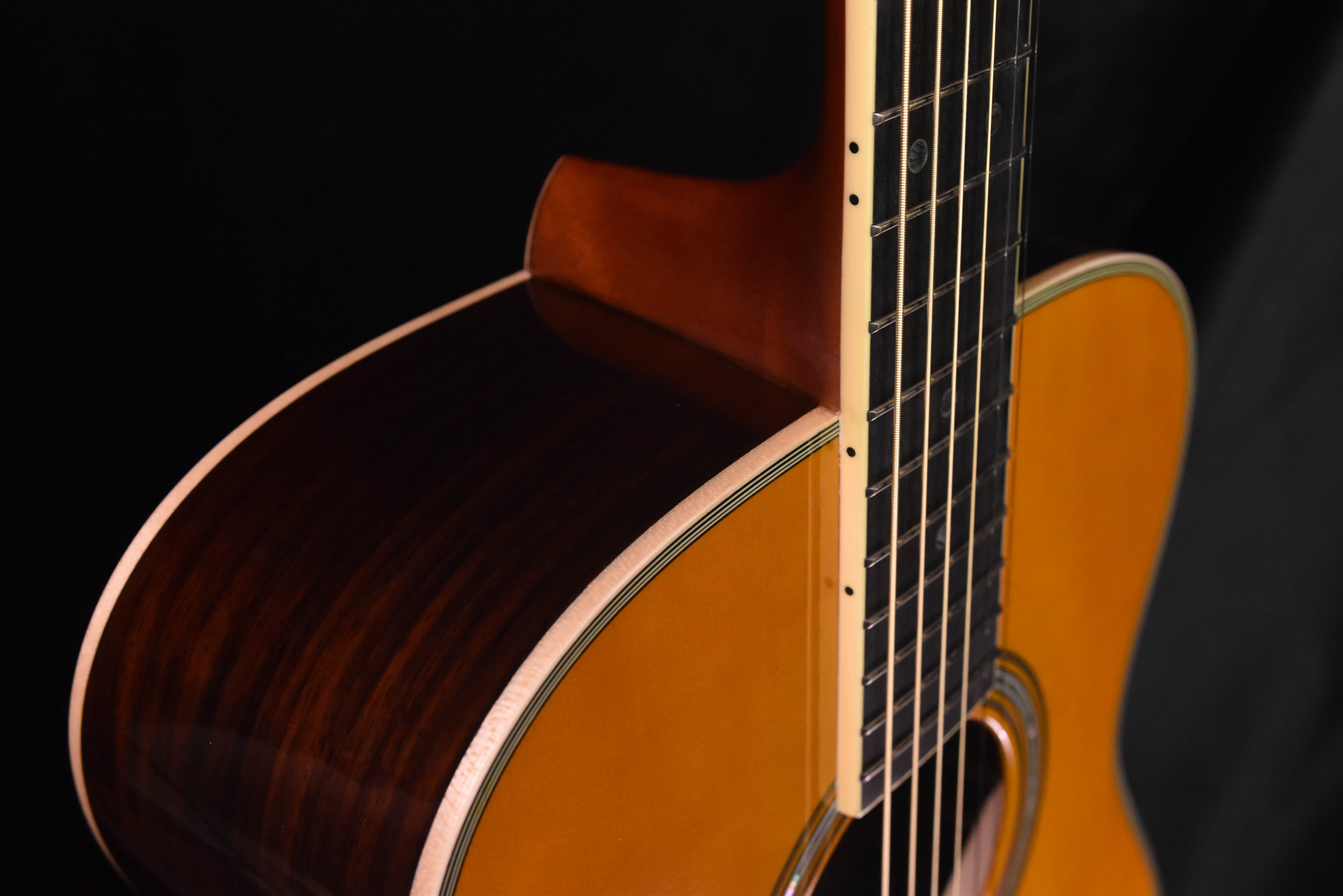 - Solid rosewood back & sides produces extremely warm and resonant tones.